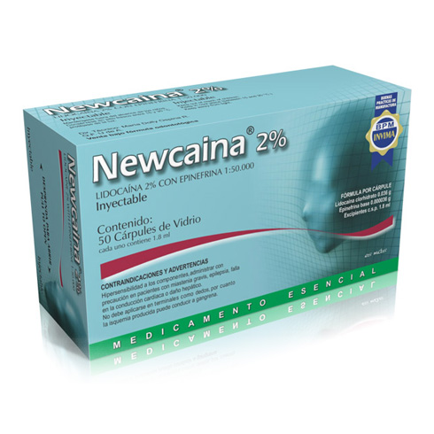 Solución inyectable de Lidocaína al 2% con epinefrina (o norepinefrina) como vasoconstrictor. Proporciona anestesia local rápida y profunda. Cartuchos de plástico para mayor seguridad, en caja de 50 unidades.